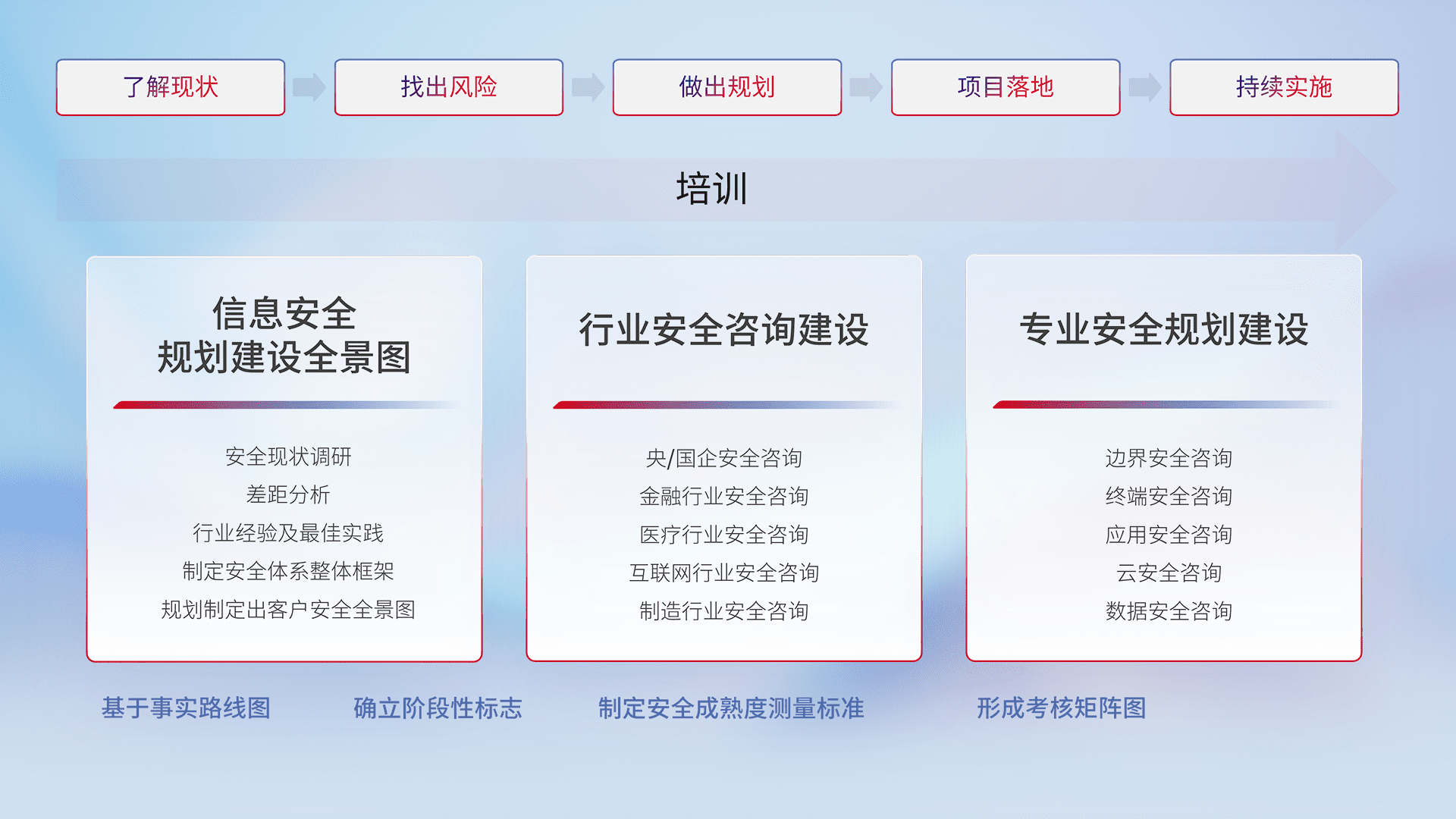 针对客户行业特性,,,以专业的安全服务+多厂商联合解决方案提供专属的一站式安全管理服务,,,帮助客户全面感知网络空间威胁,,,基于识别、、检测、、分析、、、、防护、、、、监测、、响应的服务理论模型,,,,从方案咨询、、、、集成交付、、、评估验证、、优化加固、、运维运营,,,,致力于为客户提供完整的闭环管理式安全服务。。。。以实战经验为客户打造高抵御风险的安全体系,,,帮助客户发现威胁、、、、对抗威胁、、、处置威胁,,,,不断积累安全对抗能力,,,持续保障数字化安全。。